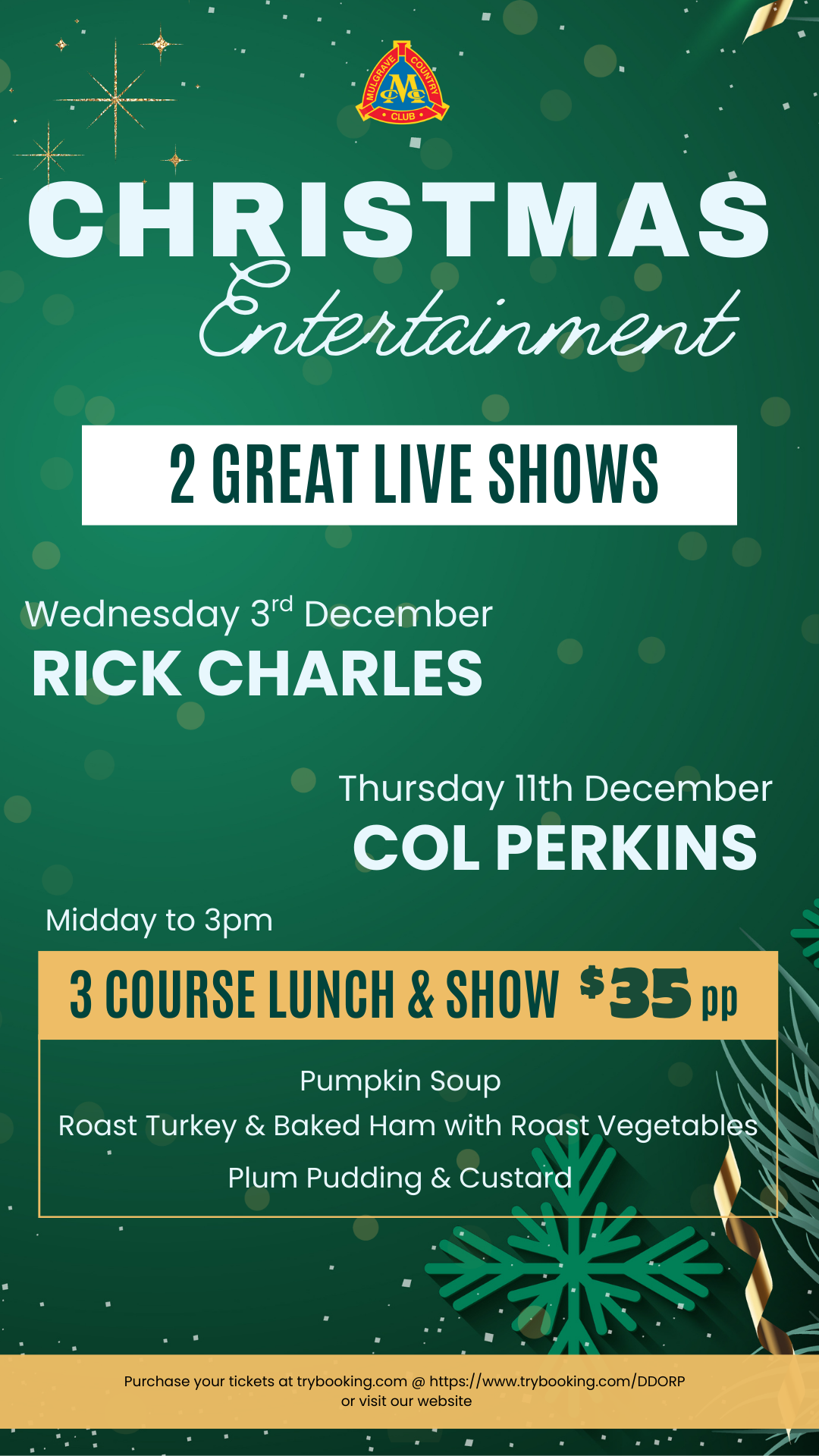 Rick Charles and Col Perkins will be rocking the Mulgrave Room this Christmas!